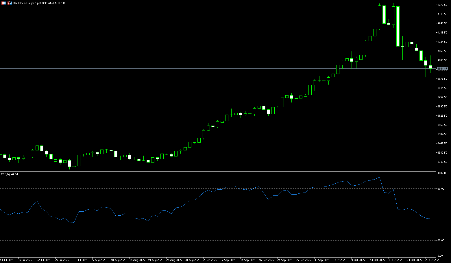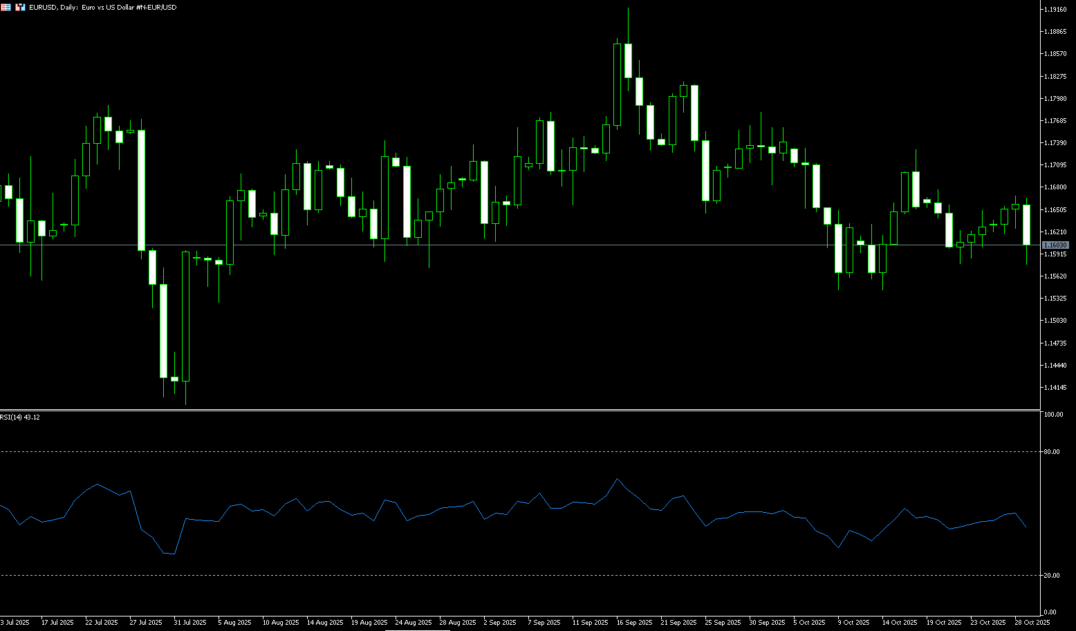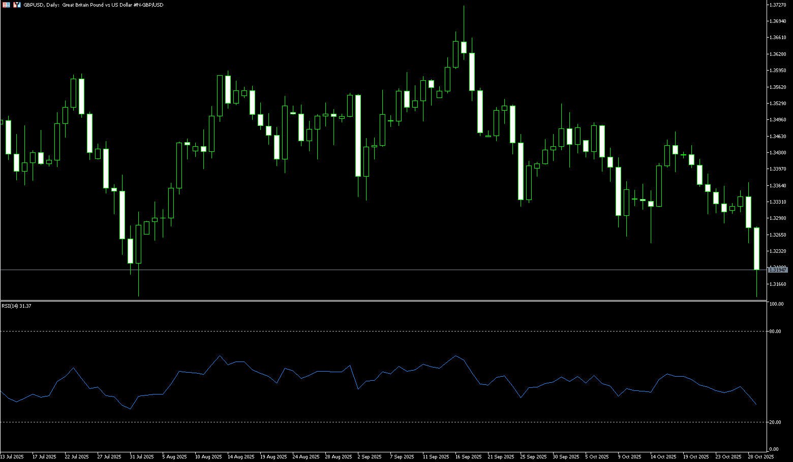 The euro continued its rebound against the dollar, retreating after rising for the fifth consecutive trading day, climbing from a low of 1.1576 last week to a high of 1.1668 before giving back to around 1.160. The euro continued its appreciation, briefly breaking through 1.1650 to reach a one-week high. Although the upward momentum remains fragile, facing resistance at the 1.1700 (psychological level) and 1.1728 (October 17 high), signs of easing in US-China trade relations and market expectations of further interest rate cuts have boosted risk appetite, putting pressure on the safe-haven dollar and supporting the euro, which is testing the 1.1778 (October 1 high) level. On the other hand, the 14-day Relative Strength Index (RSI) is near 50.00, leaving room for further declines. Below, support is near the 1.1600 level, followed by last week's low of 1.1576 and the 1.1573 (134-day simple moving average) area. A break below these levels would target the 1.1500 (psychological level).