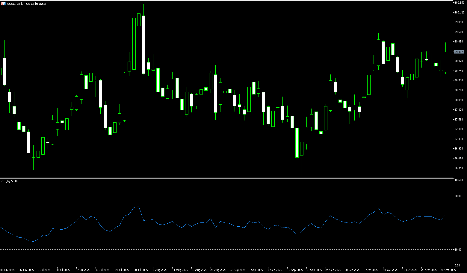The US dollar index extended its gains to above 99.20 on Wednesday, its highest level since mid-October, after the Federal Reserve cut interest rates by 25 basis points as expected, although Chairman Powell stated at his regular press conference that a December rate cut was not a certainty. The market's implied probability of such a move fell to about 88%, down from about 90% earlier in the day. Investors generally expect another 25 basis point rate cut in December, consistent with the Fed's September forecast. Furthermore, at today's meeting, two officials disagreed: the governor of Milan supported a deeper half-percentage-point rate cut, while Kansas City Fed President Jeff Schmid advocated for maintaining stable interest rates. Meanwhile, investors anticipate a meeting between US President Trump and Chinese President Xi Jinping, which is expected to finalize a framework for suspending higher US tariffs and China's rare earth export controls. The dollar strengthened mainly against the pound, euro, Swiss franc, and yen.
