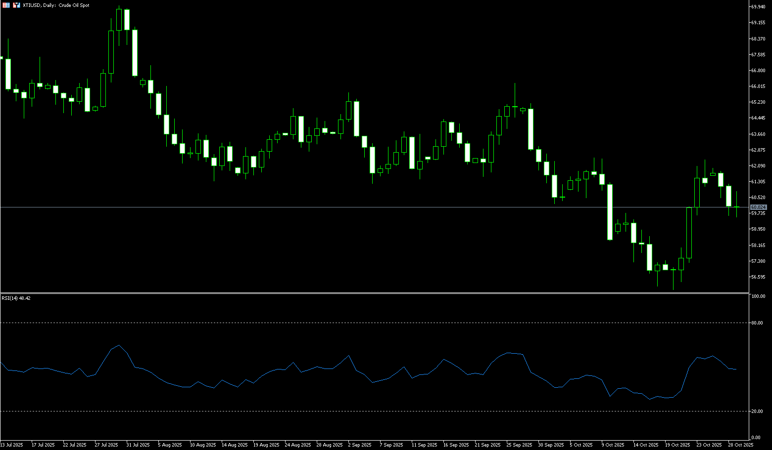 US crude oil is trading slightly above $60.00 per barrel. Oil prices fell more than 2% on Tuesday as investors assessed the impact of US sanctions on Russia's two major oil companies on global supply, and OPEC+'s potential production increase in December. Last week, both Brent and US crude futures recorded their biggest weekly gains since June, as US President Trump imposed sanctions on Russia for the first time in his second term over the Ukraine crisis, targeting Lukoil and Rosneft. On the other hand, OPEC and its allies, including Russia, are inclined to increase production slightly again in December. The organization has previously limited production for several years to support the oil market and began gradually lifting production cuts in April this year. Increased OPEC+ production could help offset the reduction in Russian crude oil supply caused by US sanctions.